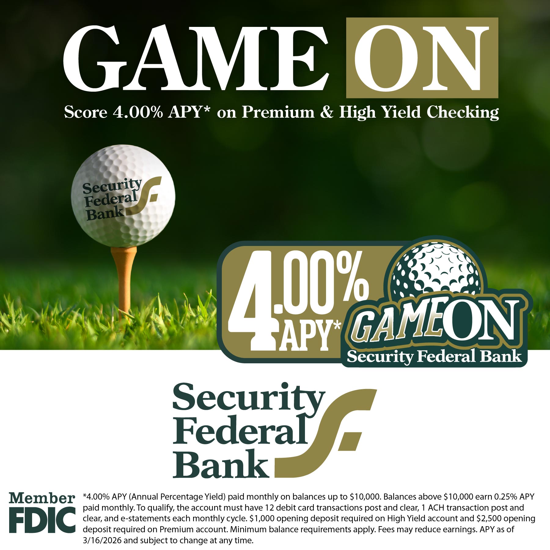 Game ON, Security Federal Bank!